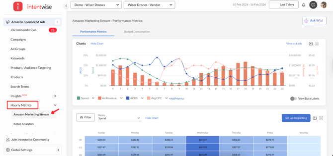 Hourly Metrics: Amazon Marketing Stream and Budget Consumption