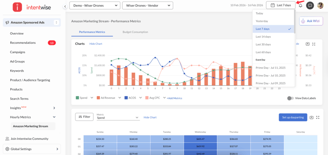 Amazon Marketing Stream (AMS) or Hourly Metrics provides hourly performance data by keyword, including details such as targeting performance by placement and budget consumption. This data can help you optimize your campaigns more effectively and respond quickly to any performance changes.