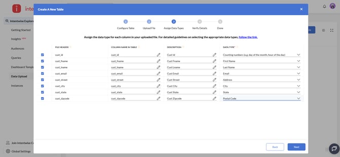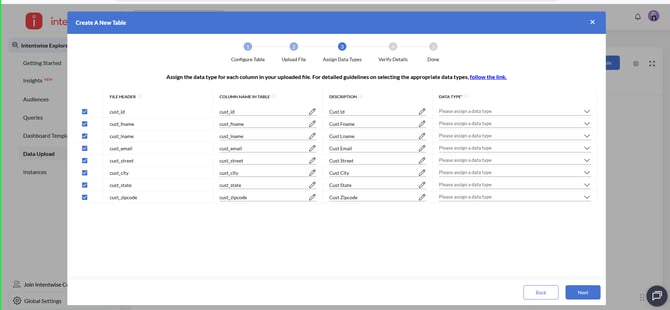 Assign Data Types: Assign the data type for each field. This step is mandatory.
