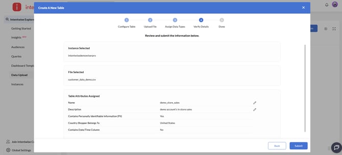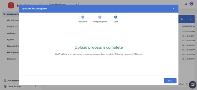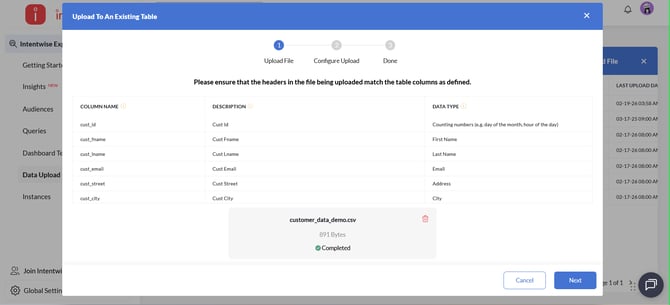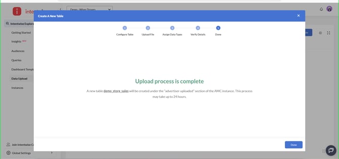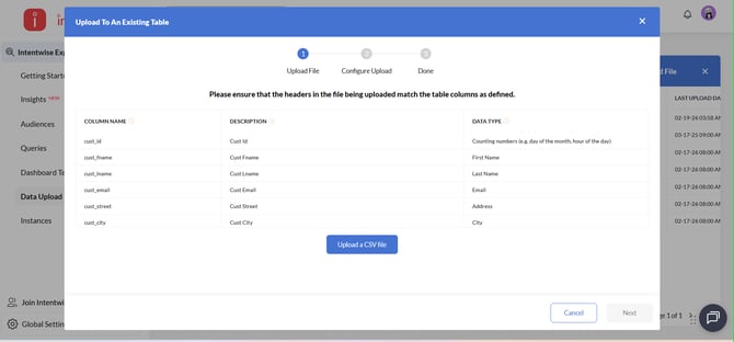 Intentwise facilitates this process by offering a user-friendly interface to create dedicated tables and upload files.
