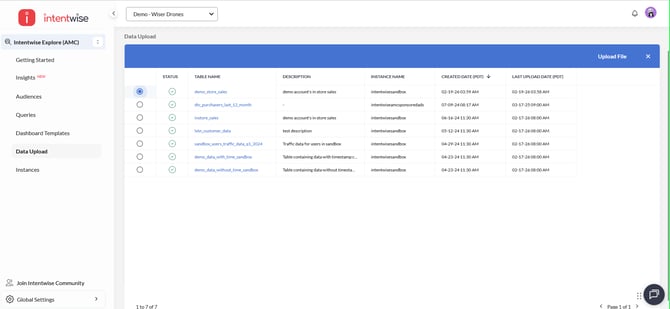Manage your tables: Find your tables under 'Data Upload.' You can upload new files to these tables without needing to recreate them or assign data types again.
