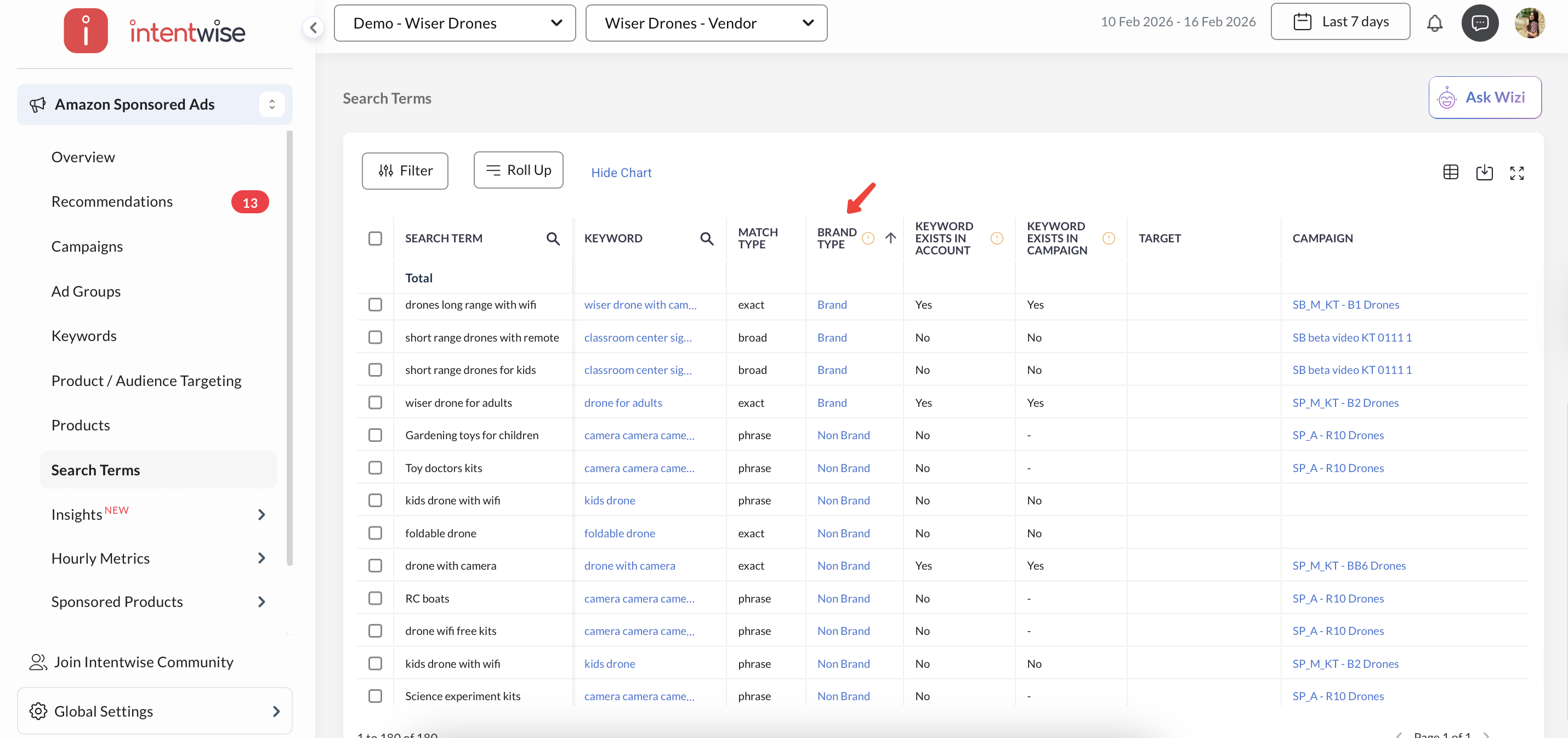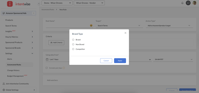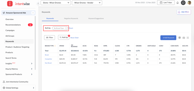 Automatic Tagging: Intentwise automatically tags your targeting and search term data as Brand, Competitor, or Non-Brand, ensuring accurate segmentation and reporting.