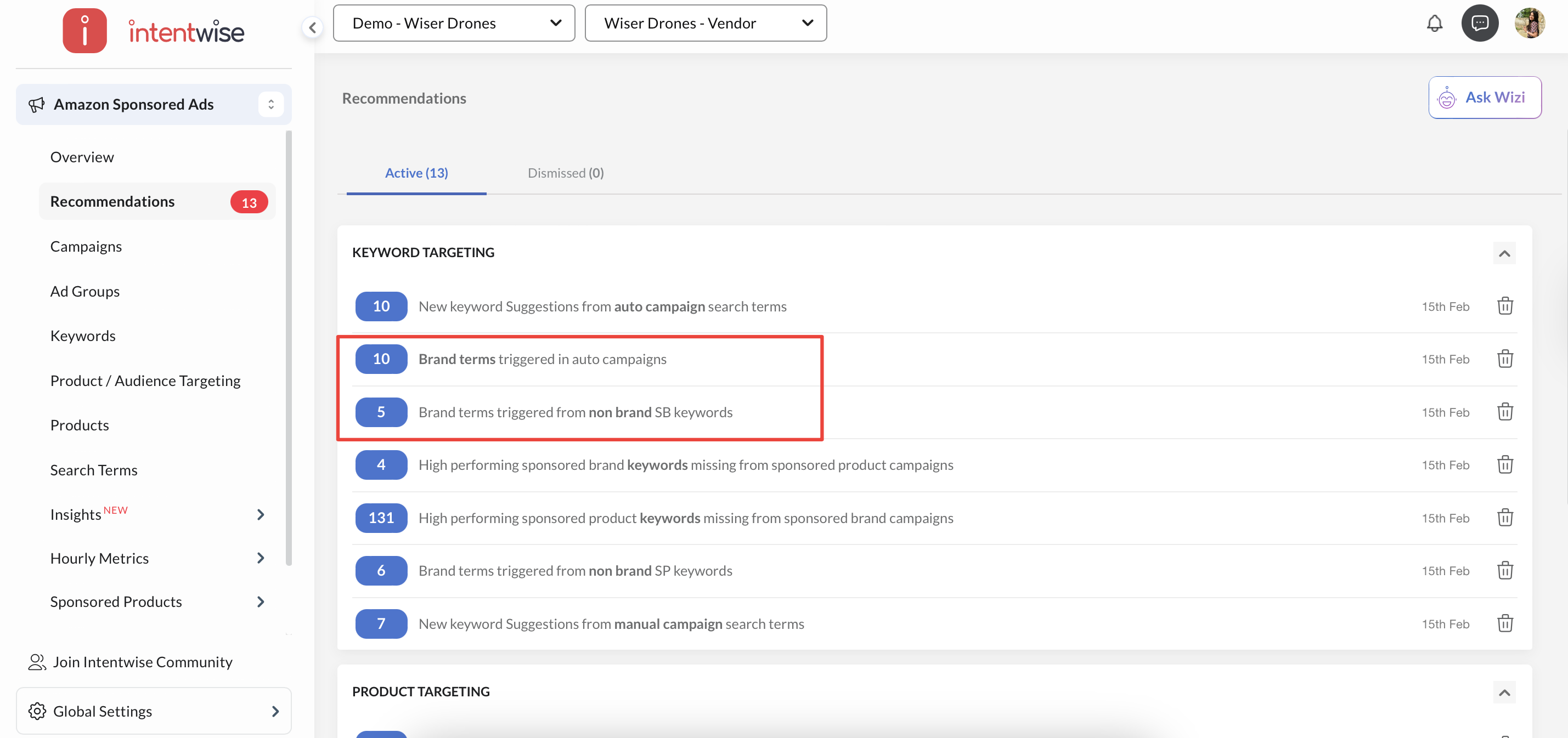 Recommendations: Receive actionable recommendations to optimize brand performance by refining search terms and targeting.