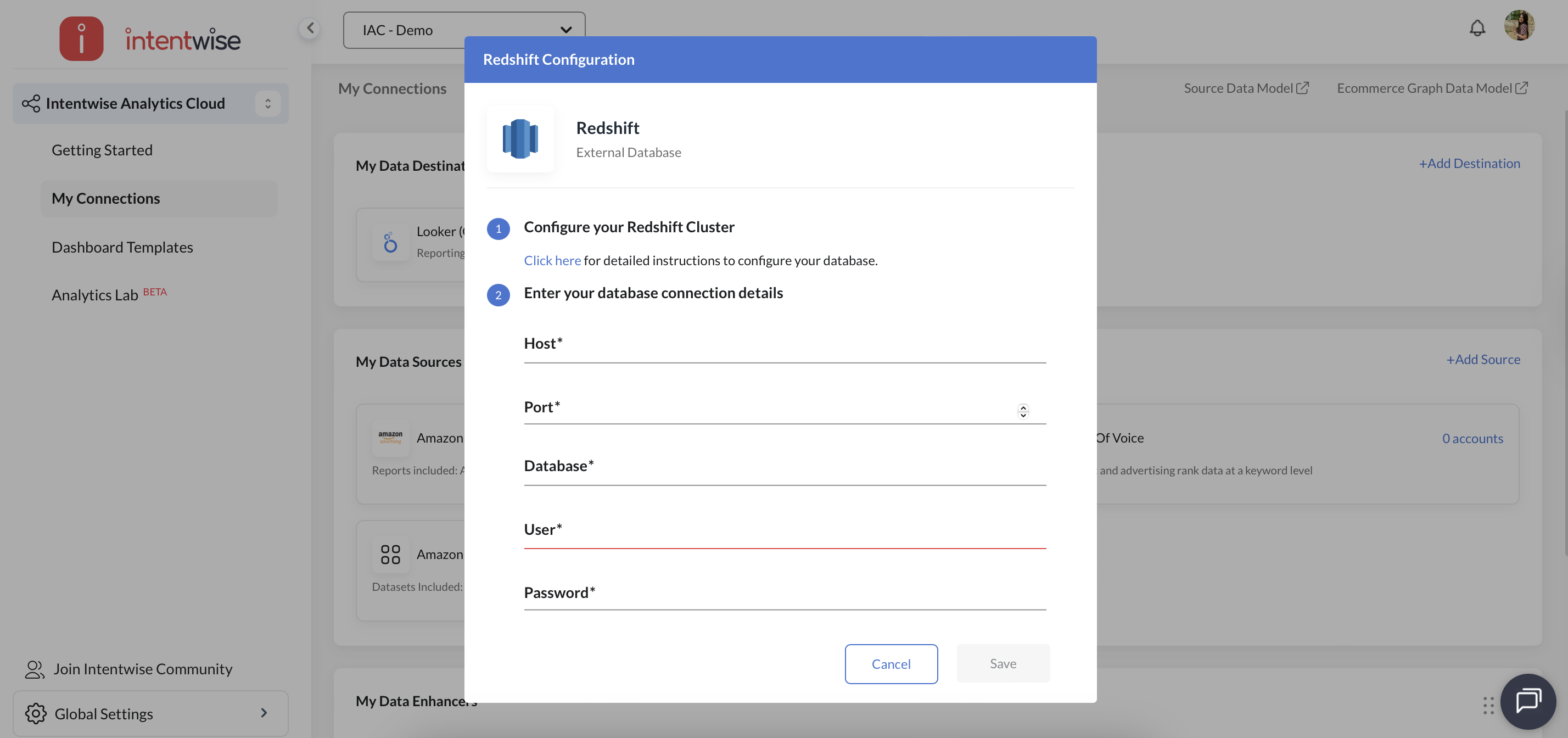 Steps for configuring Redshift with Intentwise Analytics Cloud