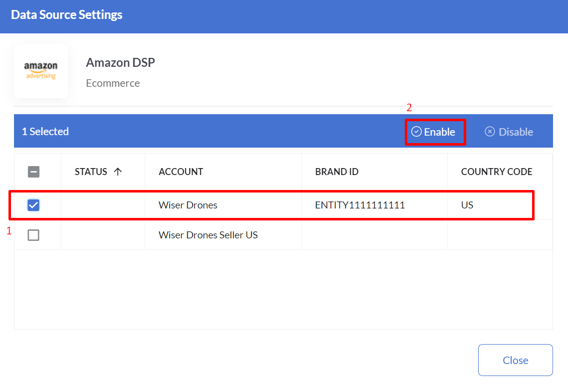 Select the Amazon DSP Advertiser(s) that you want to add.