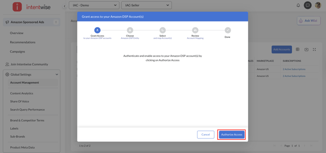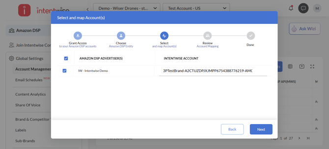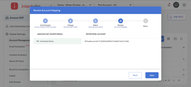 Review the DSP accounts and corresponding Intentwise accounts you are linking them with and click Next.