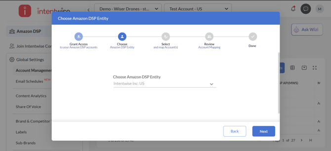 Please Note: If you don't have a corresponding account on Intentwise Platform, you can create a new one, which will be a DSP-only account. Once all accounts are mapped, click Next.