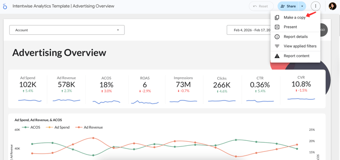 Go to Dashboard Templates in the left menu, select a template, open it with Looker Studio, and create a copy.
