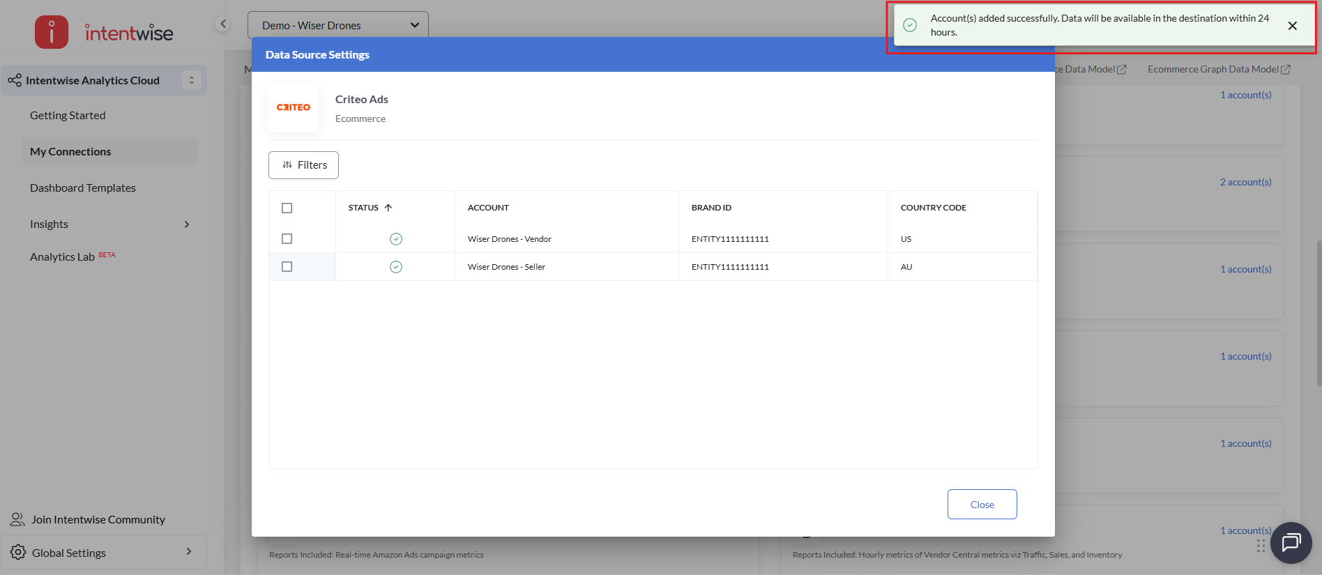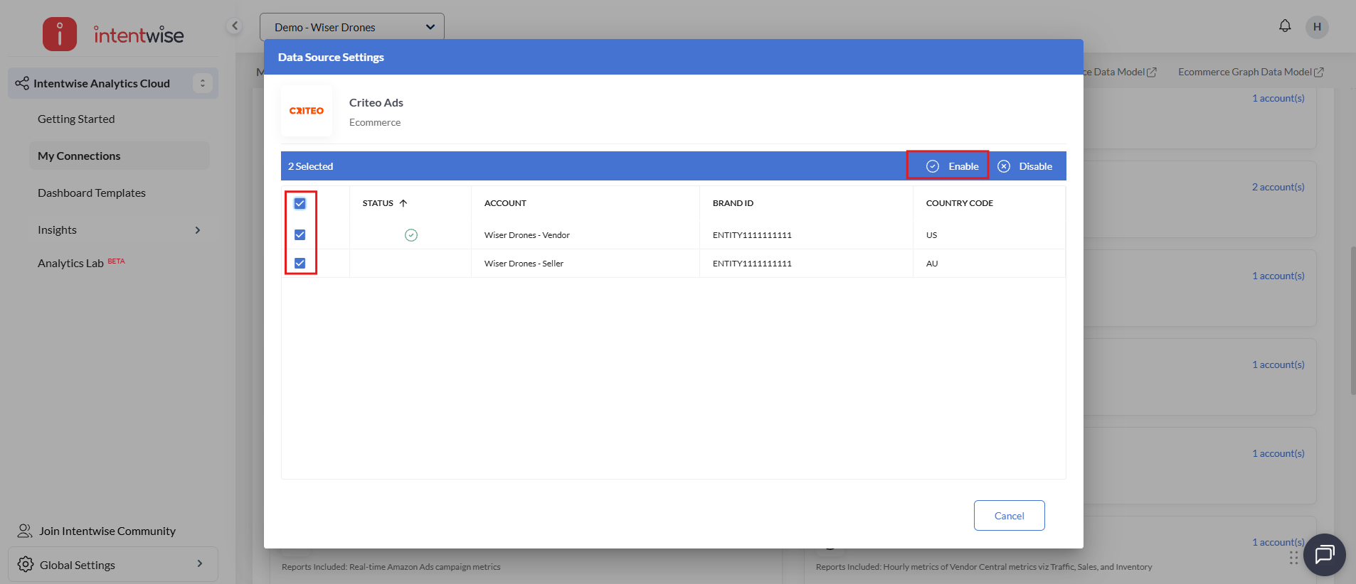 Once you are done adding your Criteo Ads accounts, please follow the below instructions/steps to activate this as a data source in IAC.