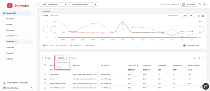 Roll Ups: Roll-ups aggregate data to show summarized views by supply source.