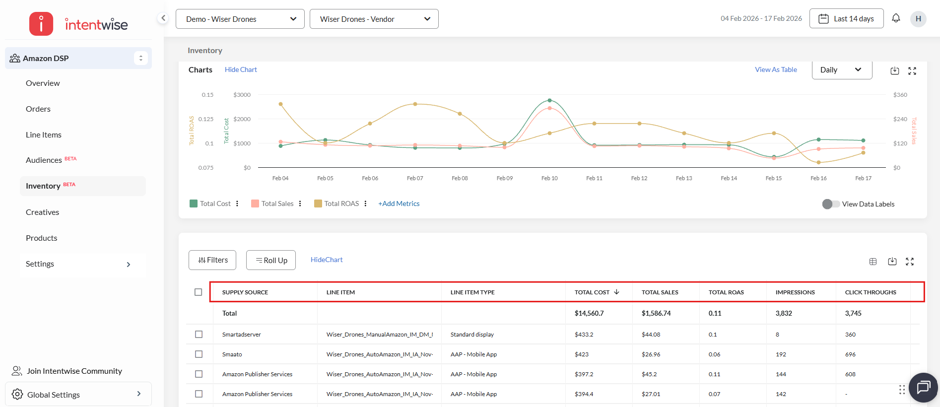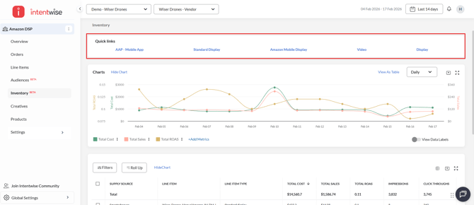 Intentwise's dedicated dashboard streamlines inventory management, offering insights into supply sources, sites, and placement sizes per Line Item. Enjoy the convenience of bulk actions and access key performance data for efficient decision-making.
