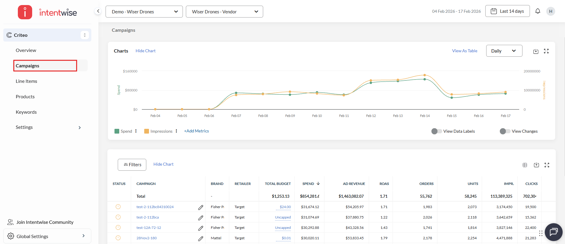 Navigation: Go to the Campaigns tab in the left navigation menu.