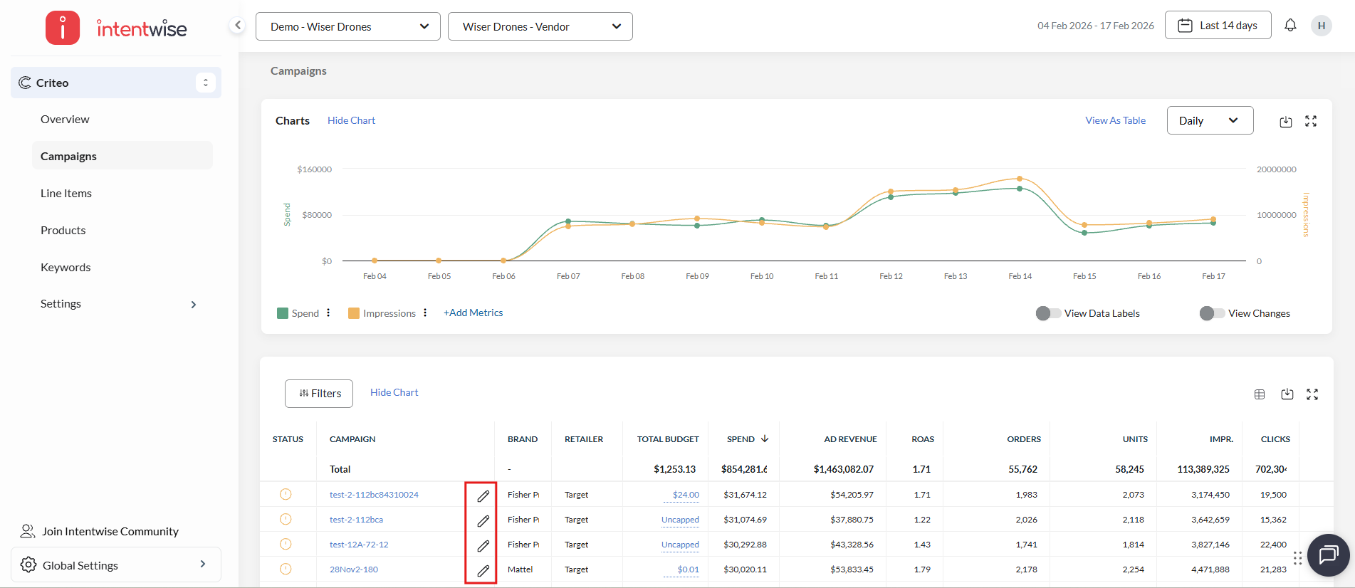 Select Campaign: Select the Pencil/Edit icon for the campaign that you want to edit.