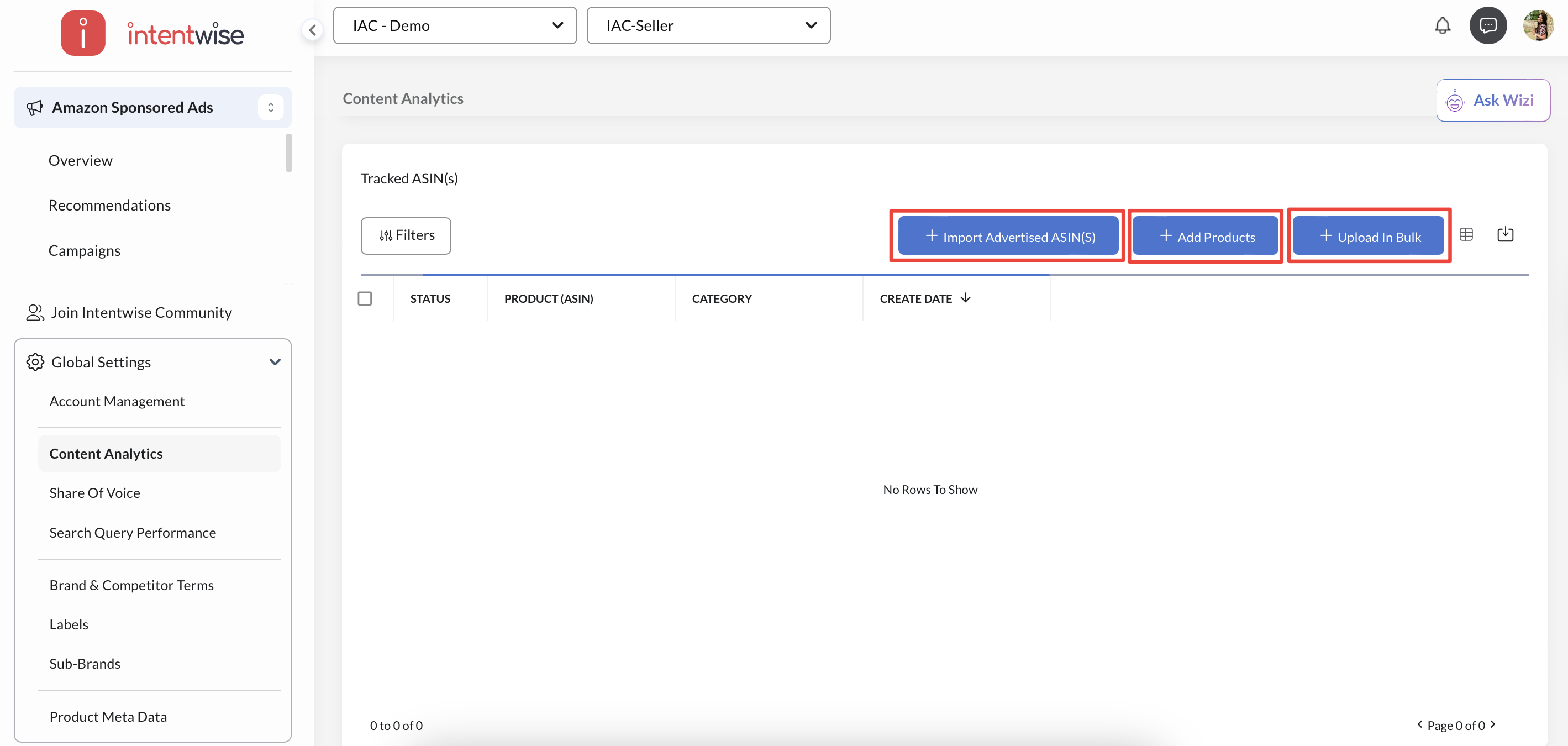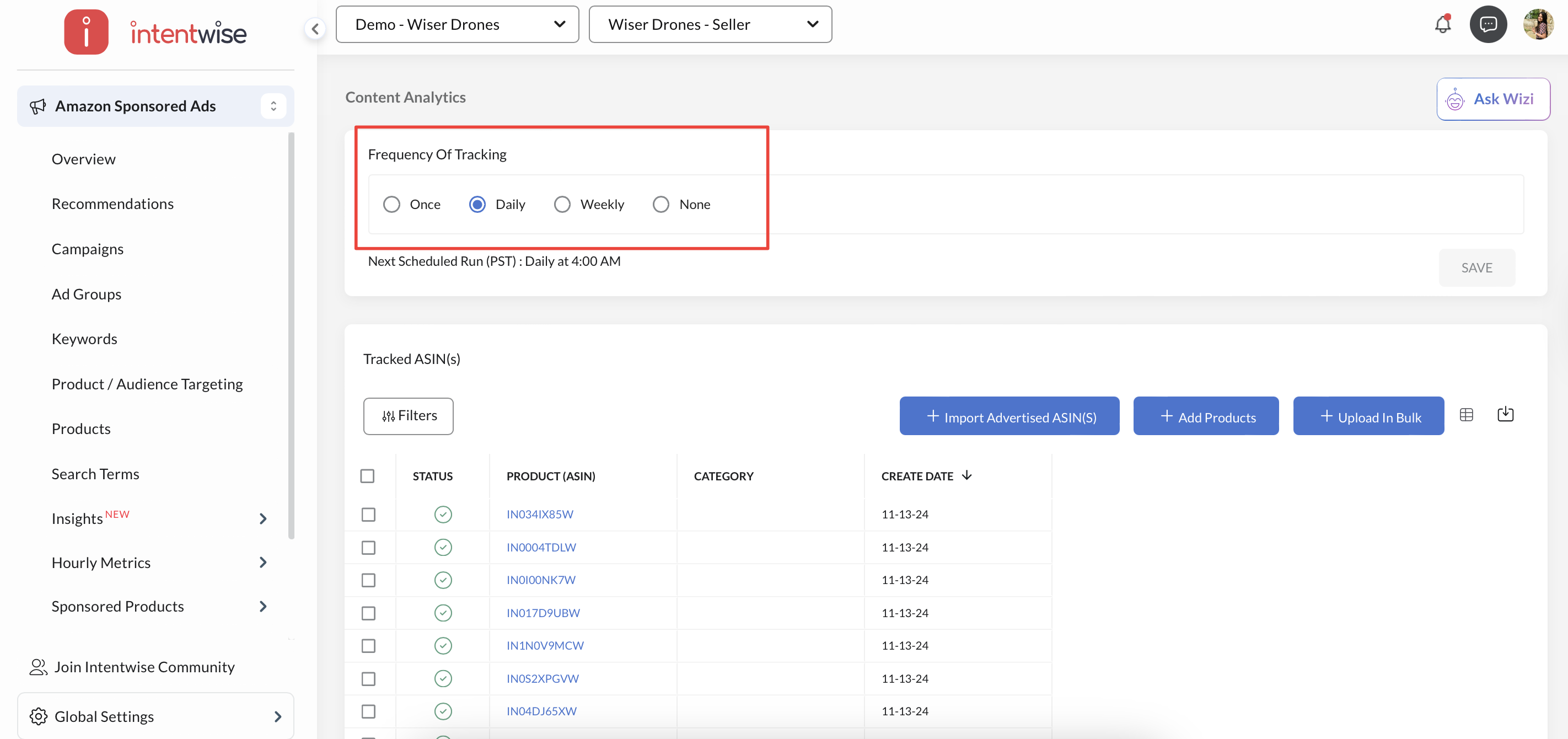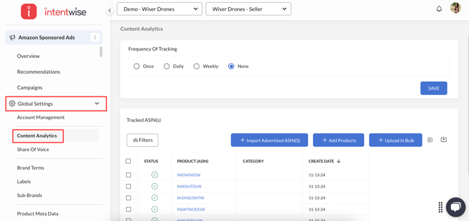 Add ASINs to track: You can directly import advertised ASINs or add products individually or in bulk.