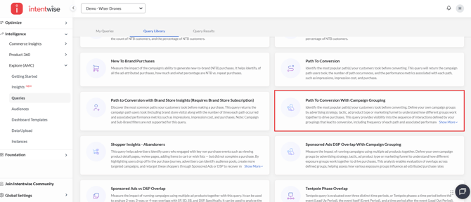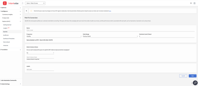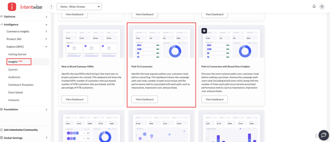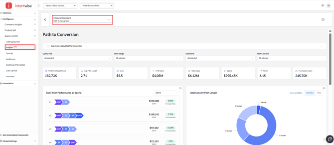 - Once all required parameters are configured and the query is executed, results can be accessed in the Insights section within the same Path to Conversion dashboard.