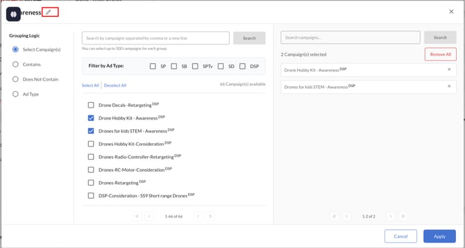 - Campaign groups can be renamed to align with your naming conventions for better clarity and organization