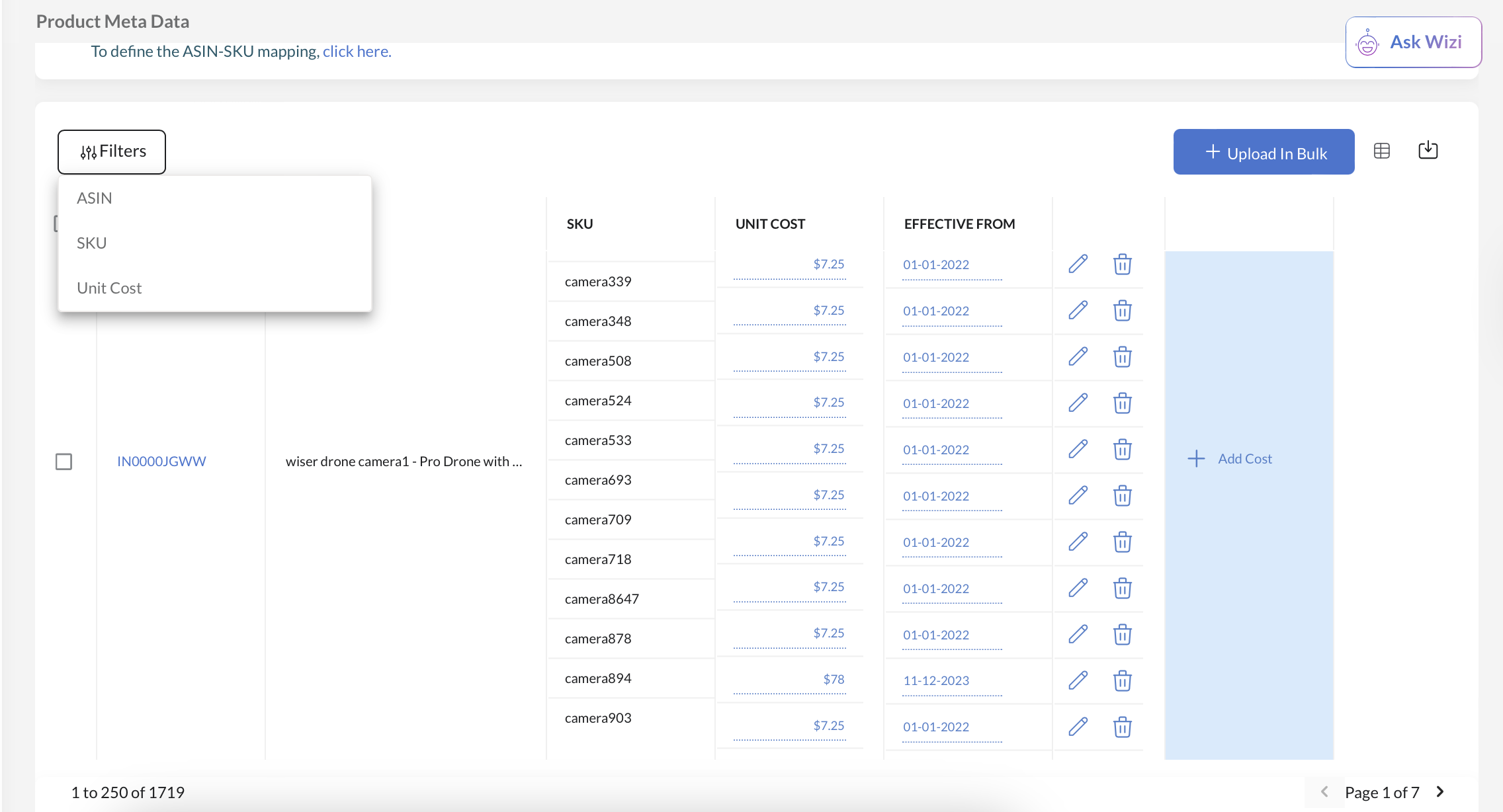 For Seller Accounts only, the ASIN to SKU Mapping will help update Product Costs at SKU level. There are two ways you can achieve this: