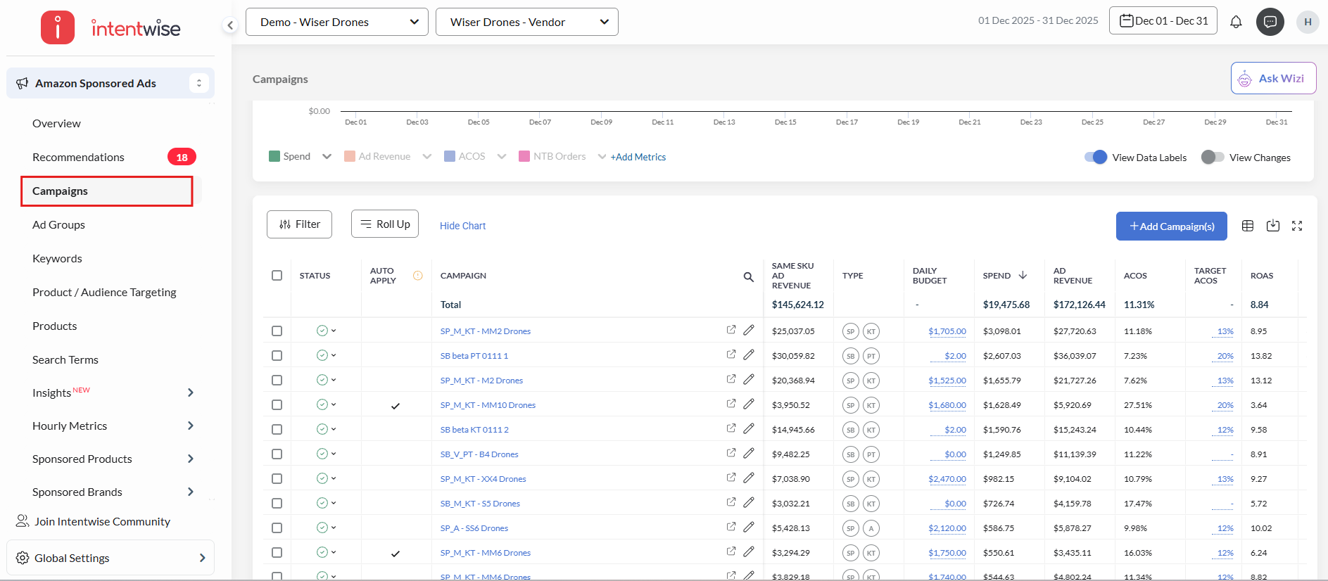 Underperforming and high-performing campaigns, products, keywords, etc.