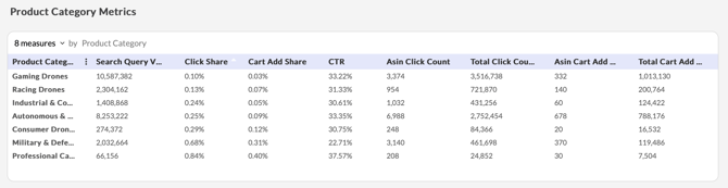 Example: Racing Drones may show strong CTR but weak purchase share.