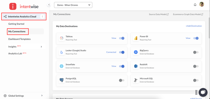 - Navigation: Go to Intentwise Analytics Cloud > My Connections.