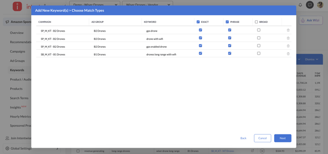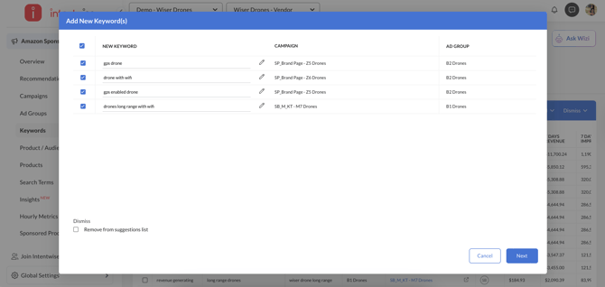 Select the search terms and choose the current or multiple SP and SB campaigns where you want to add them. These suggestions can be easily added to existing campaigns.