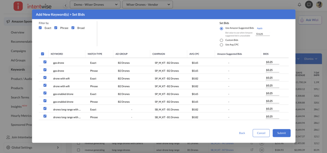 Set the Bids and click on Submit.