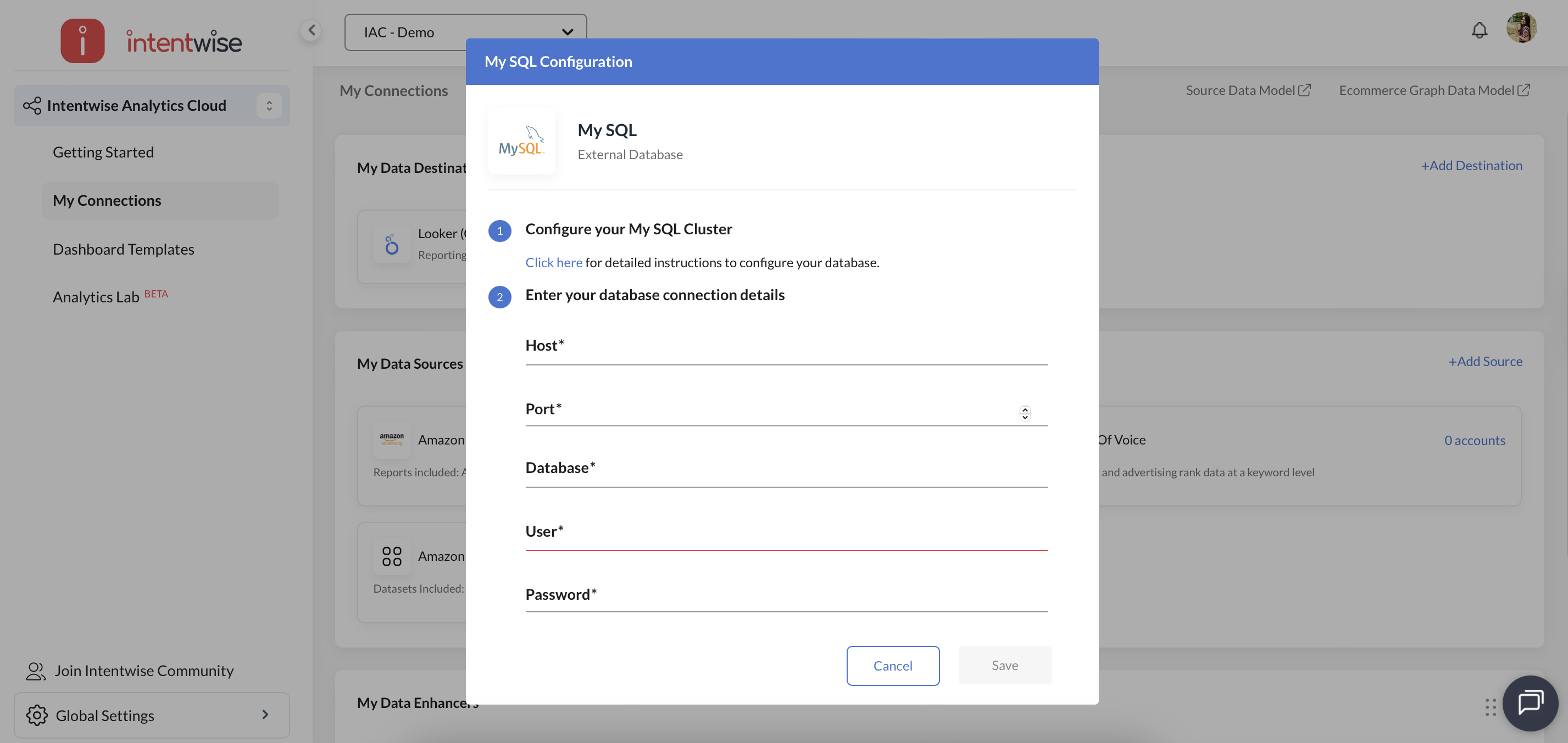 Learn how to configure MySQL with Intentwise Analytics Cloud by following this step-by-step guide.