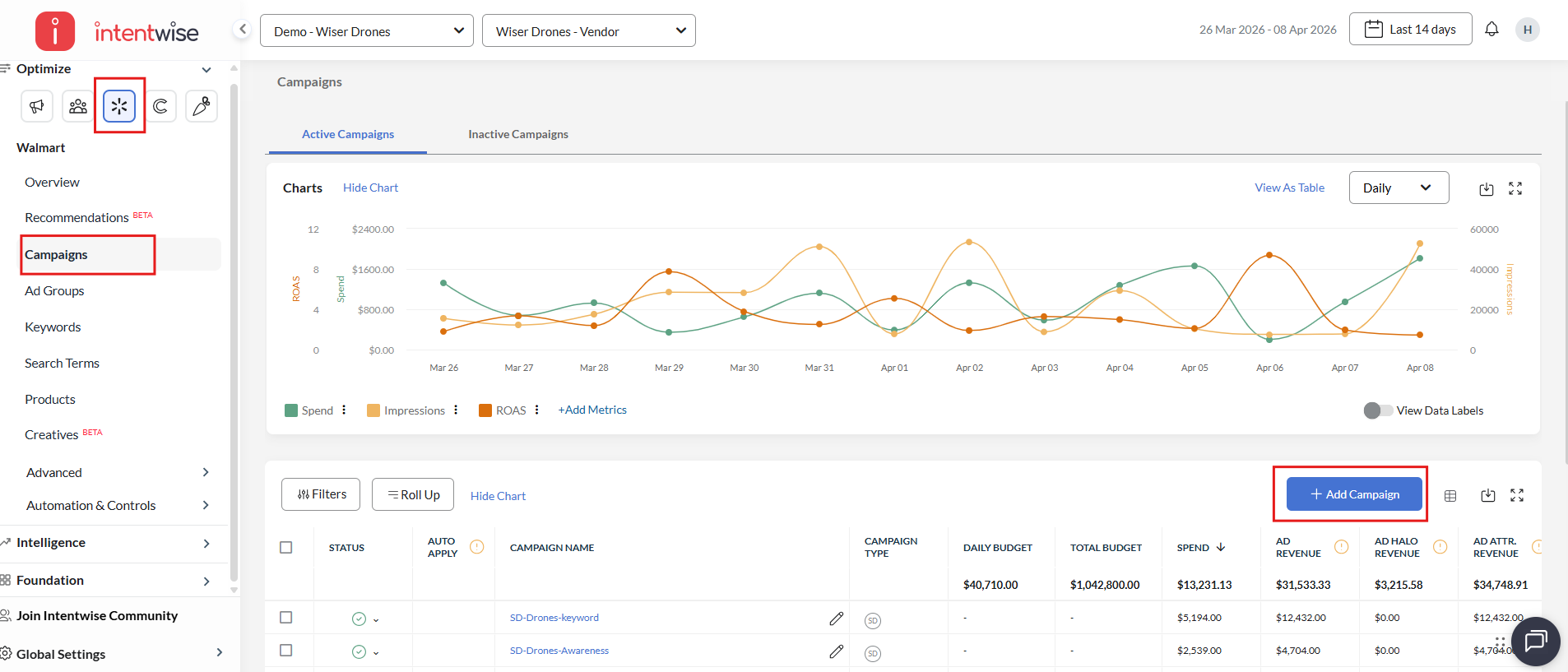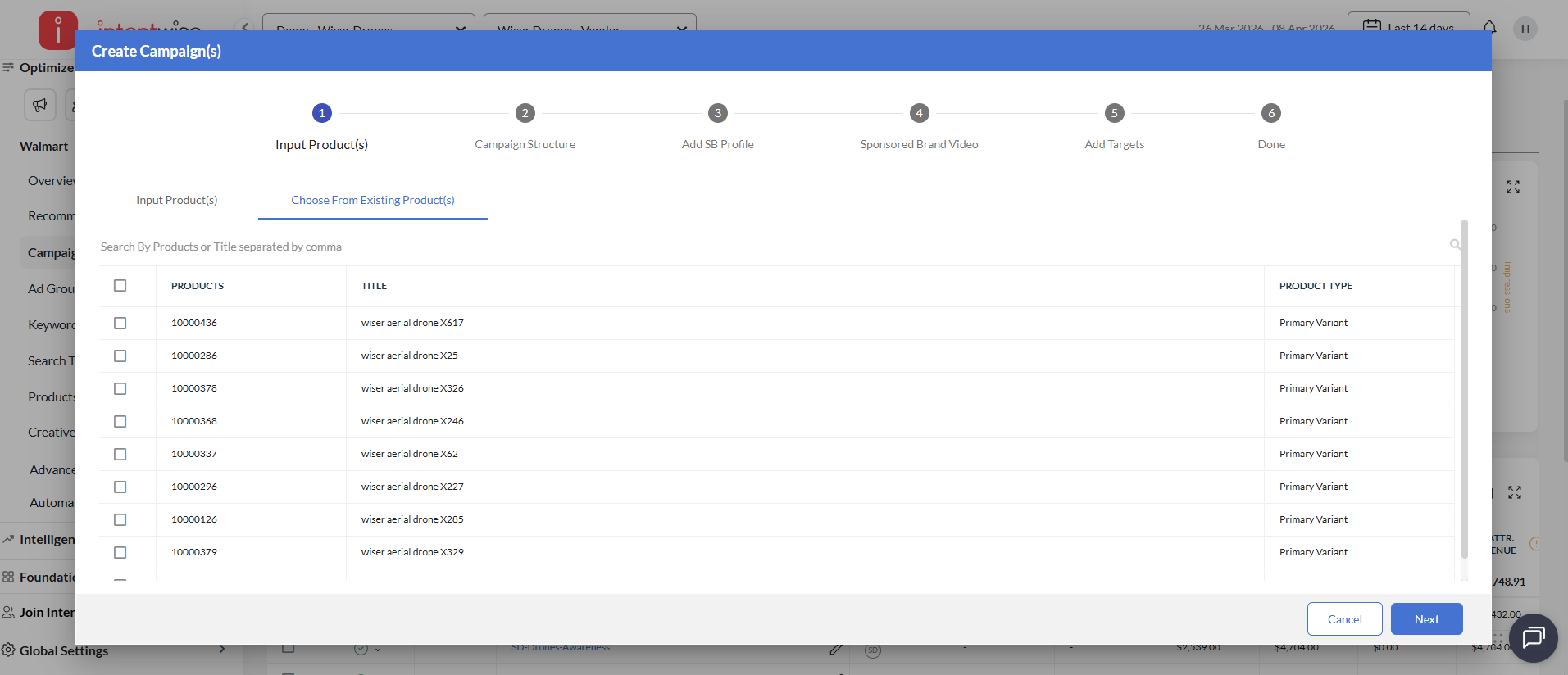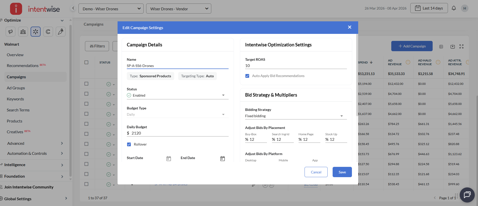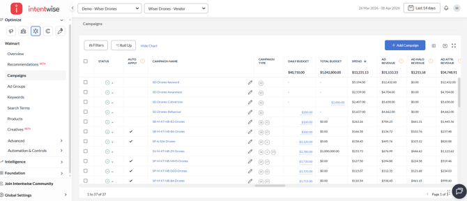 With Intentwise, you can create Walmart campaigns in bulk.