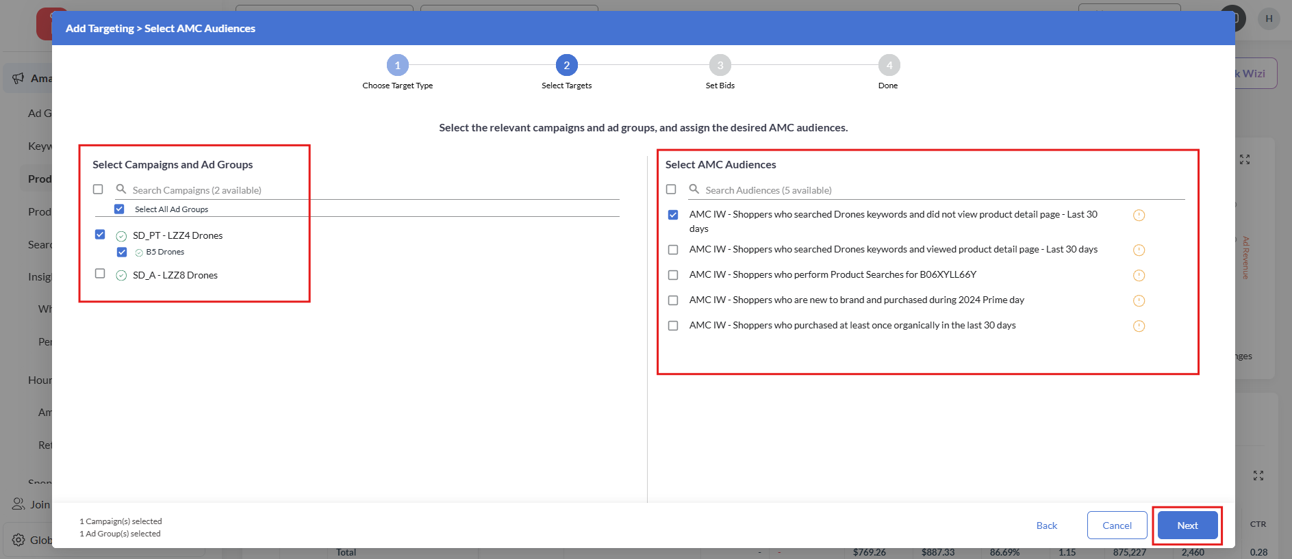Select Campaigns and Ad Groups: Choose your Sponsored Display campaigns and ad groups, then select the AMC audiences you want to target.