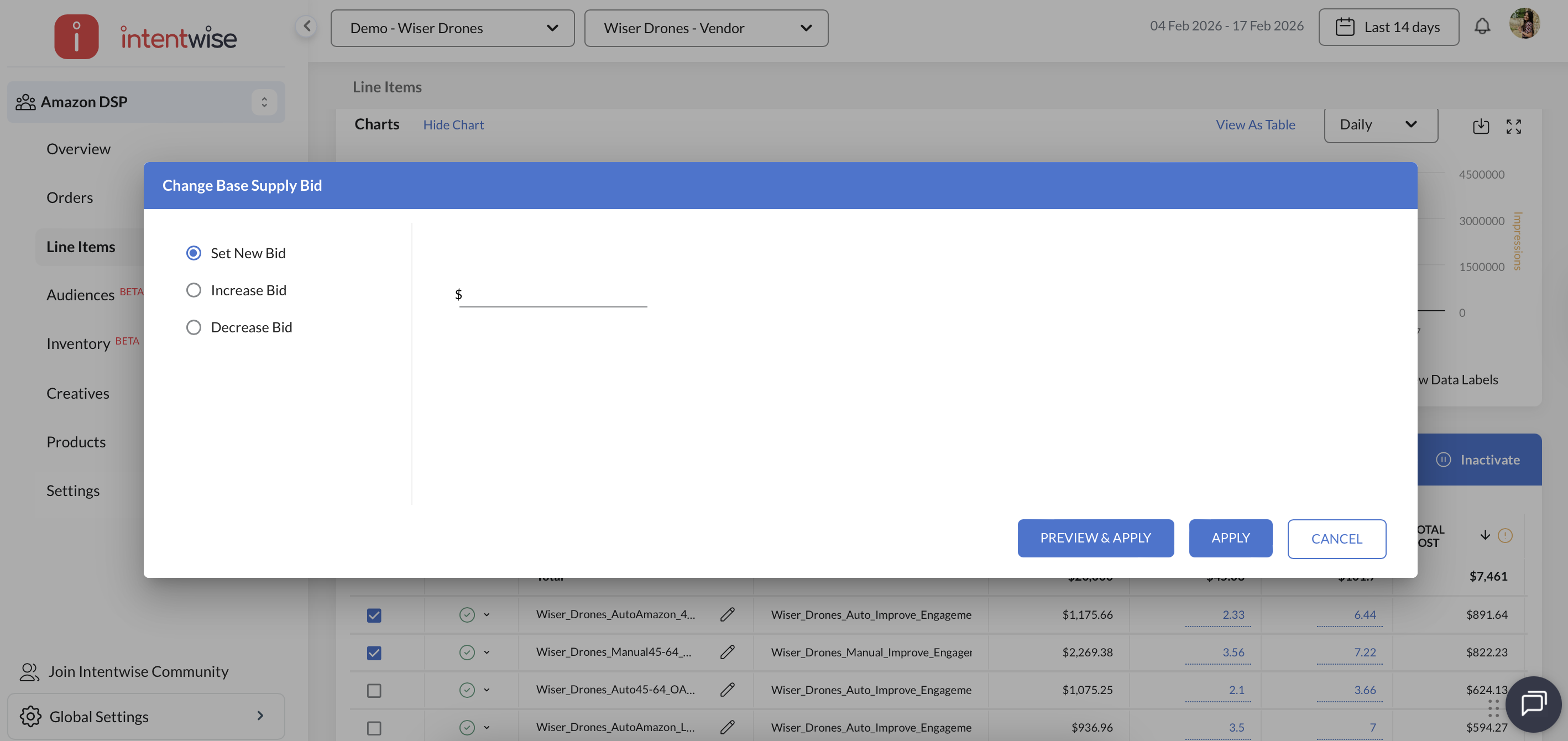The Intentwise platform makes managing bids for your Amazon DSP Line Items simple. You can easily adjust line item bids within Intentwise, which this article will walk through.