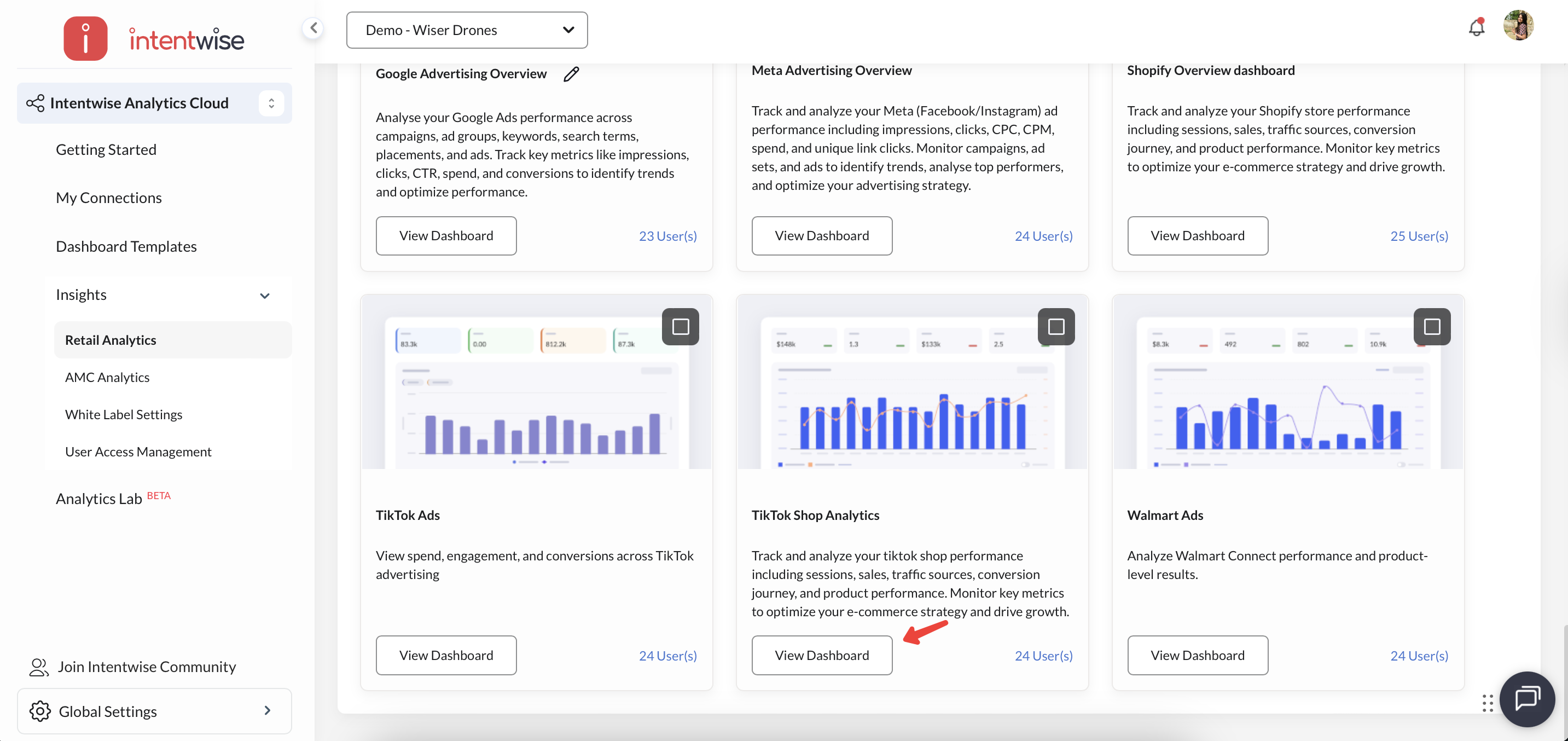 Go to Intentwise Analytics Cloud from the left navigation menu
