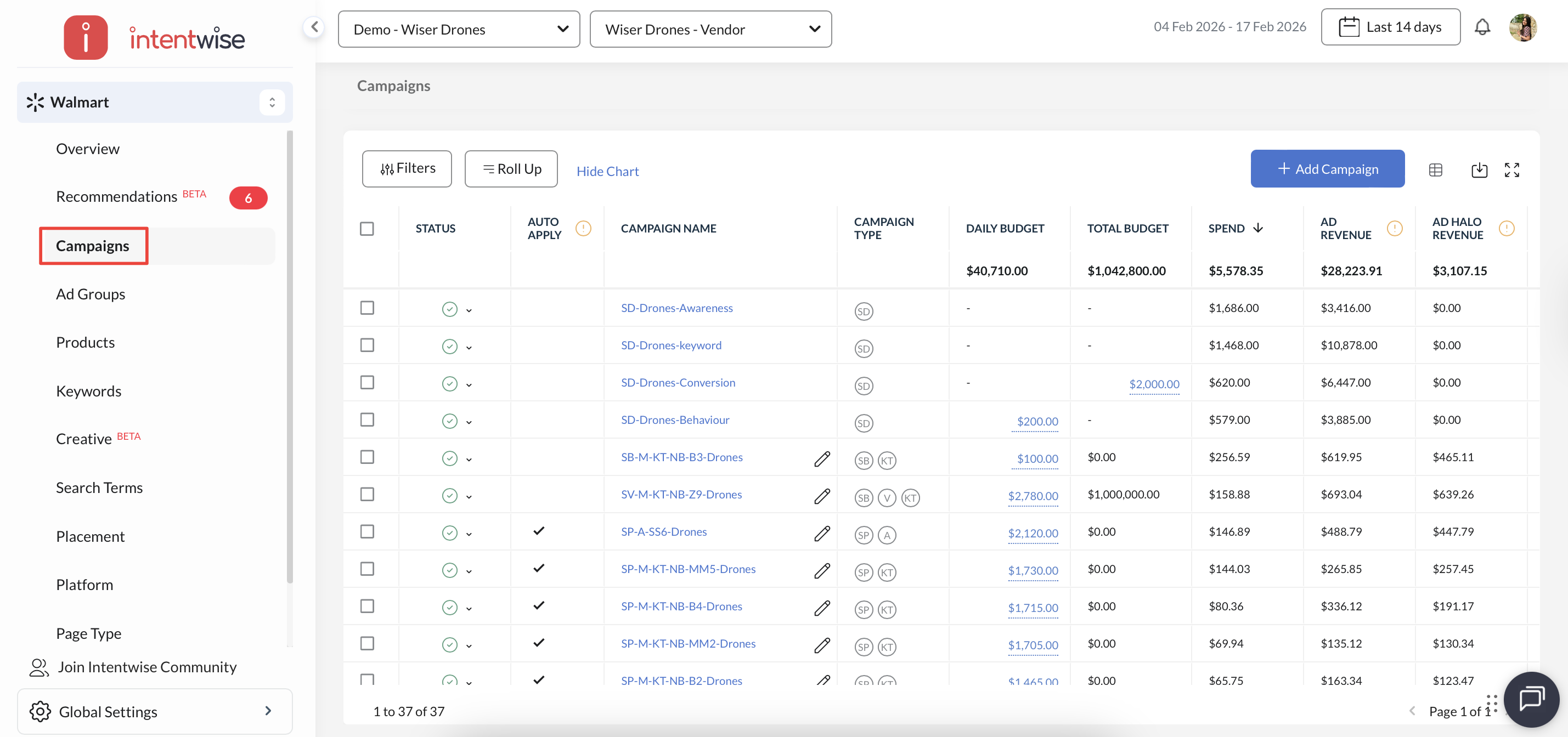 Navigate to Walmart: Access your Walmart account via the Intentwise platform.