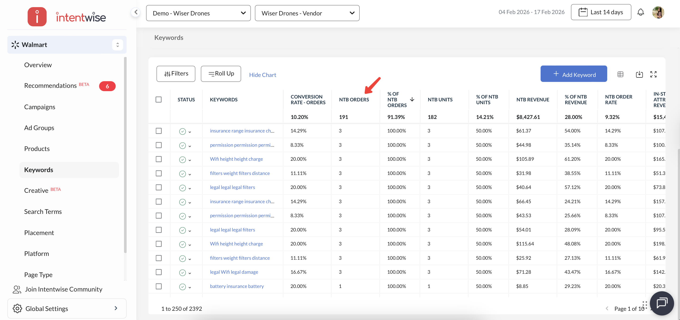 Leverage Insights for Optimized Performance: Use Intentwise to integrate NTB metrics with your broader marketing strategy, focusing on keywords and products that drive high NTB conversions. Adjust your ad spend and budget allocation to optimize for both brand growth and customer loyalty.