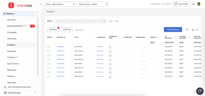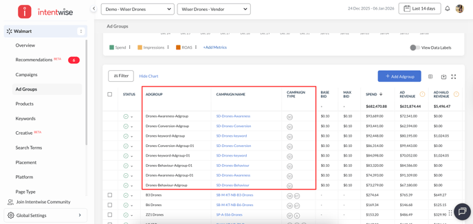 Access Walmart Display ad metrics in Intentwise with performance reporting across campaigns, ad groups, creatives, and products.